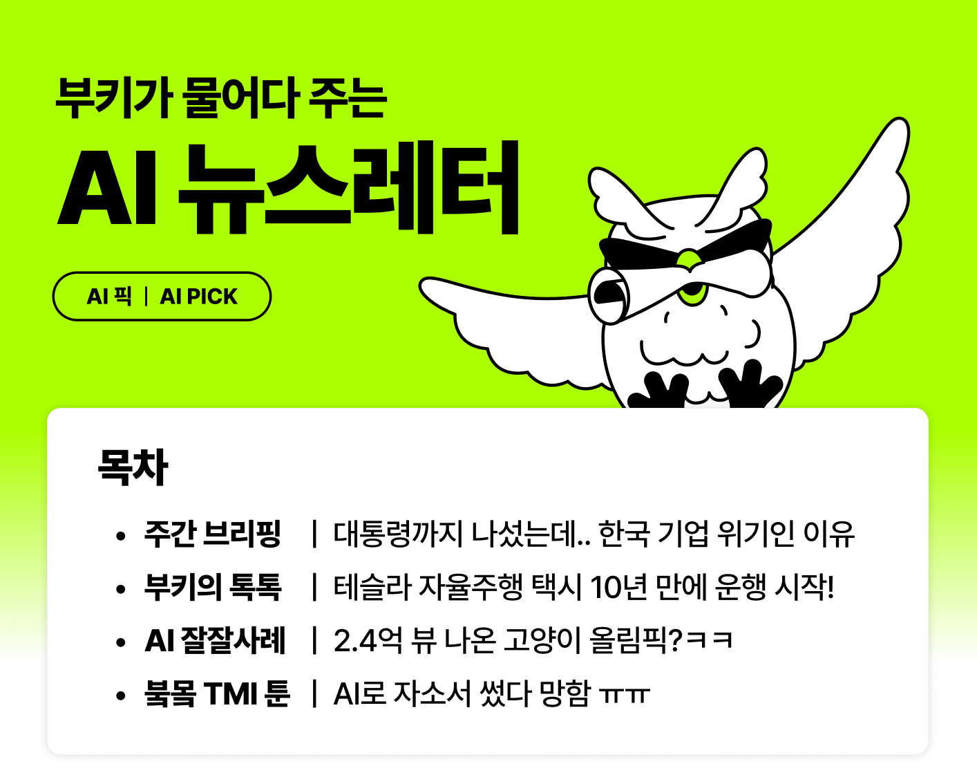 [6์ ๋ท์งธ ์ฃผ] '๋ถํค'๊ฐ ๋ฌผ์ด๋ค ์ฃผ๋ AI ๋ด์ค๋ ํฐ ๐ฆ ๋์น๋ฉด ์ ๋ 6์ ๋ท์งธ์ฃผ ๋ด์ค TOP5 |